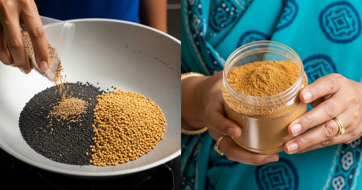 ഈയൊരു മരുന്നുകൂട്ട് തയ്യാറാക്കാനായി ആവശ്യമായിട്ടുള്ള പ്രധാന ചേരുവകൾ കരിഞ്ചീരകം, അയമോദകം, നല്ല ജീരകം, ഉലുവ ഇത്രയും സാധനങ്ങളാണ്. എല്ലാ ചേരുവകളും 50 ഗ്രാം എന്ന അളവിലാണ് എടുക്കേണ്ടത്. ഈയൊരു അളവിൽ എല്ലാ ചേരുവകളും എടുത്ത് പൊടിച്ചു വയ്ക്കുകയാണെങ്കിൽ കുറഞ്ഞത് ഒരു മാസത്തേക്ക് ഉപയോഗിക്കാനായി സാധിക്കുന്നതാണ്. ആദ്യം തന്നെ എടുത്തു വച്ച ചേരുവകൾ ഒരു ചീനച്ചട്ടിയിലേക്ക് ഇട്ട് കരിയാത്ത രീതിയിൽ ഒന്ന് ചൂടാക്കി എടുക്കുക. എല്ലാ ചേരുവകളുടെയും ചൂട് പൂർണമായും