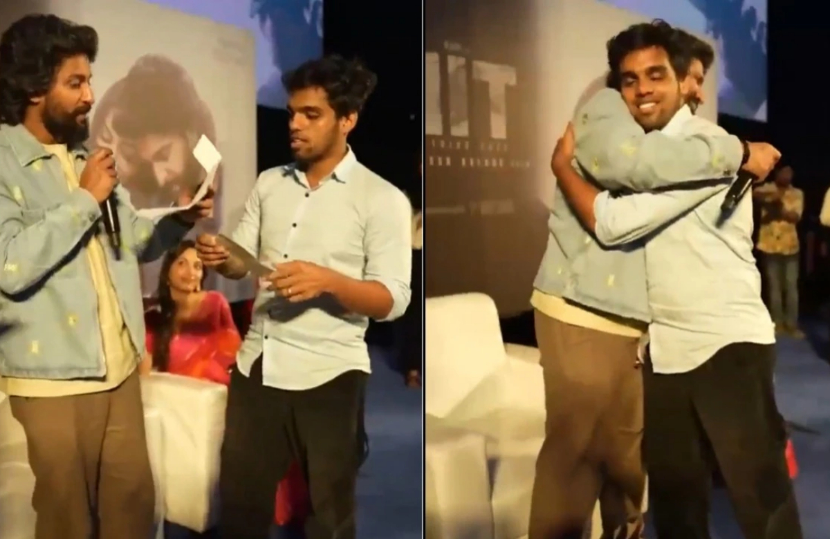 Nanis Fan Pitches Film Script At Event : തെന്നിന്ത്യൻ നായകൻ നാനിയുടെ കേരളത്തിൽ നിന്നുള്ള ഒരു കിടിലൻ വിഡിയോയാണ് ഇപ്പോൾ സമൂഹമാധ്യമങ്ങളിൽ ട്രെൻഡിങ് ആകുന്നത്. നാനി നായകനാകുന്ന ഏറ്റവും പുതിയ ചിത്രമാണ് ഹിറ്റ് 3. നടന്റെ 32-ാമത്തെ സിനിമയായി ഒരുങ്ങുന്ന ഹിറ്റ് 3 ഏറെ പ്രതീക്ഷയോടെയാണ് ആരാധകര് കാണുന്നത്. നാനി തിരഞ്ഞെടുക്കുന്ന ചിത്രങ്ങൾ എന്നും ശ്രദ്ദേയമാവാറുണ്ട്. കൂടുതൽ മൂല്യമുള്ള ചിത്രങ്ങളാണ് തരാം എപ്പോഴും തിരഞ്ഞെടുക്കുന്നത്.