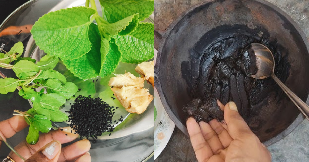 വെച്ച് അതിലേക്ക് കരിംജീരകവും ബദാമും ഇട്ട് നന്നായി കരിഞ്ഞ് വരുന്ന രീതിയിൽ വറുത്തെടുക്കുക. ഈയൊരു കൂട്ട് ചൂടാറാനായി മാറ്റിവയ്ക്കാം. ഈയൊരു സമയം കൊണ്ട് പനിക്കൂർക്കയുടെ ഇല മിക്സിയുടെ ജാറിലേക്ക് ഇട്ട് കുറച്ചു വെള്ളവും ചേർത്ത് പേസ്റ്റ് രൂപത്തിൽ അരച്ചെടുക്കുക. ഇതിൽനിന്നും നീര് മാത്രമായി മറ്റൊരു പാത്രത്തിലേക്ക് അരിച്ചെടുക്കുക. നേരത്തെ തയ്യാറാക്കിവെച്ച കരിംജീരകം നല്ലതുപോലെ പൊടിച്ചെടുക്കുക. ഇതിൽനിന്നും ആവശ്യമുള്ള അത്രയും കരിഞ്ചീരകത്തിന്റെ പൊടി ഒരു ചീനച്ചട്ടിയിലേക്ക്