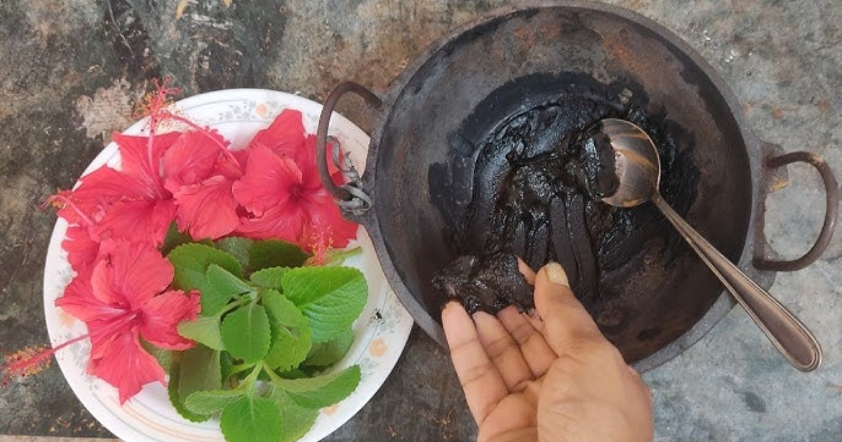 പൊടിയും മൈലാഞ്ചി പൊടിയും ഇട്ട് നല്ലതുപോലെ മിക്സ് ചെയ്യുക. പൊടികൾ നന്നായി കരിഞ്ഞു വന്നുകഴിഞ്ഞാൽ സ്റ്റൗ ഓഫ് ചെയ്യാവുന്നതാണ്. എടുത്തുവച്ച കട്ടൻചായയുടെ ബാക്കി കൂടി ഈ ഒരു കൂട്ടിലേക്ക് ഒഴിച്ച് നല്ലതുപോലെ മിക്സ് ചെയ്യുക. ശേഷം അരച്ചുവെച്ച ഇലകളുടെ കൂട്ടുകൂടി ഈ ഒരു മിക്സിലേക്ക് ചേർത്തു കൊടുക്കാവുന്നതാണ്. ഇത്തരത്തിൽ തയ്യാറാക്കുന്ന പാക്ക് ചീനച്ചട്ടിയിൽ ഒരു രാത്രി മുഴുവൻ റസ്റ്റ് ചെയ്യാനായി വെക്കണം. പിറ്റേദിവസം ഒരു ബ്രഷ് ഉപയോഗിച്ച് മുടിയിൽ അപ്ലൈ ചെയ്തു കൊടുക്കാം. കുറച്ച് സമയം കഴിഞ്ഞ് കഴുകി കളയാവുന്നതാണ്. ഇങ്ങനെ ചെയ്യുകയാണെങ്കിൽ മുടിയുടെ നര ഉൾപ്പെടെയുള്ള പല പ്രശ്നങ്ങൾക്കും പരിഹാരം കാണാനായി സാധിക്കും. വിശദമായി മനസ്സിലാക്കാൻ വീഡിയോ കാണാവുന്നതാണ്. Natural Hair Dye Using Hibiscus credit : Vichus Vlogs