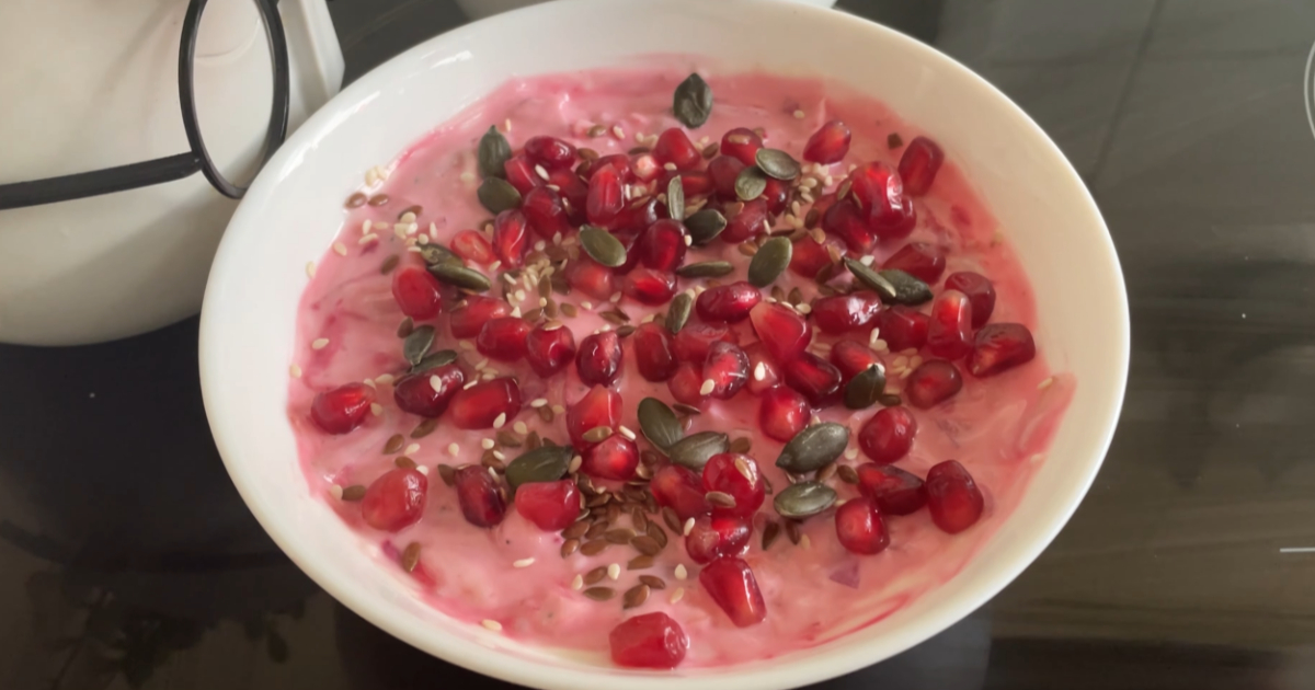 ഉപയോഗിക്കാവുന്ന ഒരു ഹെൽത്തി റെസിപ്പിയെ പറ്റി വിശദമായി മനസ്സിലാക്കാം. ഈയൊരു ഹെൽത്തി മിക്സ് തയ്യാറാക്കുന്നതിനായി ആവശ്യമായിട്ടുള്ള സാധനങ്ങൾ വീട്ടിൽ തന്നെ തയ്യാറാക്കിയെടുത്ത യോഗർട്ട്, ഒരു ക്യാരറ്റിന്റെ പകുതി, കുക്കുമ്പർ, ഉള്ളി,ബീറ്റ്റൂട്ട്, ആവശ്യത്തിന് ഉപ്പ് എരുവിന് ആവശ്യമായ കുരുമുളകുപൊടി, പംകിൻ സീഡ്, ഫ്ലാക്സ് സീഡ്, മാതളനാരങ്ങ ഇത്രയും സാധനങ്ങൾ മാത്രമാണ്.ഈയൊരു മിക്സ് തയ്യാറാക്കി