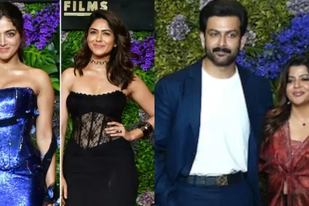 Production Company Maddock Grand Celebration : പ്രമുഖ നിർമാണക്കമ്പനിയായ മാഡോക്സിൻ്റെ ഗ്രാൻഡ് പാർട്ടിയിൽ തിളങ്ങി പൃഥ്വിരാജ് സുകുമാരനും സുപ്രിയ മേനോനും. ബോളിവുഡിലെ പ്രമുഖ നിർമാണക്കമ്പനിയാണ് മാഡോക്സ്. മുംബൈയിൽ വച്ചായിരുന്നു പാർട്ടി. വിക്കി കൗശൽ, വരുൺ ധവാൻ, കൃതി സനോൺ, ശ്രദ്ധ കപൂർ, രശ്മിക മന്ദാന, സാറ അലിഖാൻ, അഭിഷേക് ബച്ചൻ, സിദ്ധാർത്ഥ് മൽഹോത്ര, എ.ആർ. റഹ്മാൻ, അനന്യ പാണ്ഡെ, മൃണാൾ ഠാക്കൂർ, വാമിഖ ഗബ്ബി തുടങ്ങി നിരവധി പേർ പാർട്ടിയിൽ പങ്കെടുത്തിരുന്നു.
