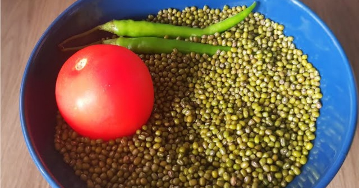 ഒരു കപ്പ് ചെറുപയർ കഴുകിയെടുക്കാം. ഇത് കുറഞ്ഞത് 4 മണിക്കൂറെങ്കിലും കുതിർത്തെടുക്കണം. ശേഷം കുക്കറിലേക്കിട്ട് മുങ്ങികിടക്കാൻ പാകത്തിന് മുകളിലായി വെള്ളം വെക്കാം. ഉപ്പ് ചേർത്ത് കുക്കറിൽ വേവിച്ചെടുക്കാം. അതിലേക്ക് ആവശ്യമായ ഒരു അരപ്പ് തയ്യാറക്കി എടുക്കണം. അതിനായി രണ്ട് വലിയ തക്കാളി, അൽപ്പം കറിവേപ്പില, പച്ചമുളക് എല്ലാം കൂടി മിക്സിയിൽ നല്ല പേസ്റ്റ് പോലെ അരച്ചെടുക്കാം.