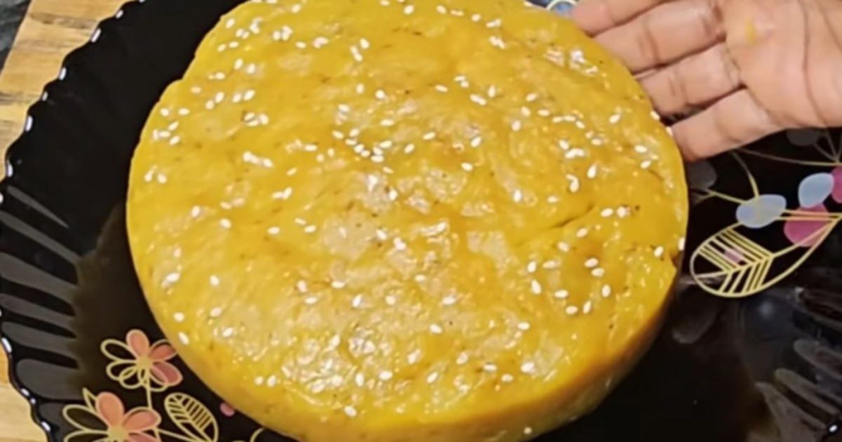 മാവിന്റെ കൂട്ട് അടുപ്പത്ത് വെച്ച് നല്ലതുപോലെ കുറുകി വരുമ്പോൾ അതിലേക്ക് ഏലക്ക പൊടിച്ചതും, കാരമലൈസ് ചെയ്തു വെച്ച പഞ്ചസാരയും ചേർത്ത് ഇളക്കി യോജിപ്പിക്കുക. കുക്കർ എടുത്ത് അതിന്റെ ഉള്ളിൽ എള്ള് വിതറിയ ശേഷം മുകളിൽ മാവ് ഒഴിച്ചു കൊടുക്കുക. ഏറ്റവും മുകളിലത്തെ ലെയറിൽ അല്പം കൂടി എള്ള് തൂവിക്കൊടുത്ത് വിസിൽ ഇടാതെ കുക്കറിൽ ആവി കയറ്റി എടുത്താൽ രുചികരമായ പലഹാരം റെഡിയായി കഴിഞ്ഞു. വിശദമായി മനസ്സിലാക്കാൻ വീഡിയോ കാണാവുന്നതാണ്. Video Credit : Malappuram rithu