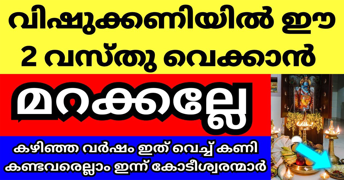 സമയമാണ്. ഈയൊരു സമയത്തിനുള്ളിൽ തന്നെ കുടുംബത്തിലെ എല്ലാവരും കണി കാണാനായി ശ്രദ്ധിക്കുക. തുടർന്ന് കുടുംബത്തിലെ മുതിർന്ന അംഗത്തിൽ നിന്നും കൈനീട്ടം വാങ്ങിയതിനു ശേഷം മറ്റു കുടുംബാംഗങ്ങളിൽ നിന്നും കൈനീട്ടം സ്വീകരിക്കാവുന്നതാണ്. കൂടാതെ കണി ഒരുക്കുന്നതിന് മുൻപായി വീട് മുഴുവൻ മഞ്ഞൾ വെള്ളം അല്ലെങ്കിൽ തുളസി വെള്ളം തളിച്ച് ശുദ്ധീകരിക്കാനായി പ്രത്യേകം ശ്രദ്ധിക്കുക. നിലവിളക്ക് കത്തിക്കുമ്പോൾ 5 തിരിയിട്ട് നെയ്യൊഴിച്ച് കത്തിക്കാവുന്നതാണ്. ഒരു കാരണവശാലും വിളക്ക്